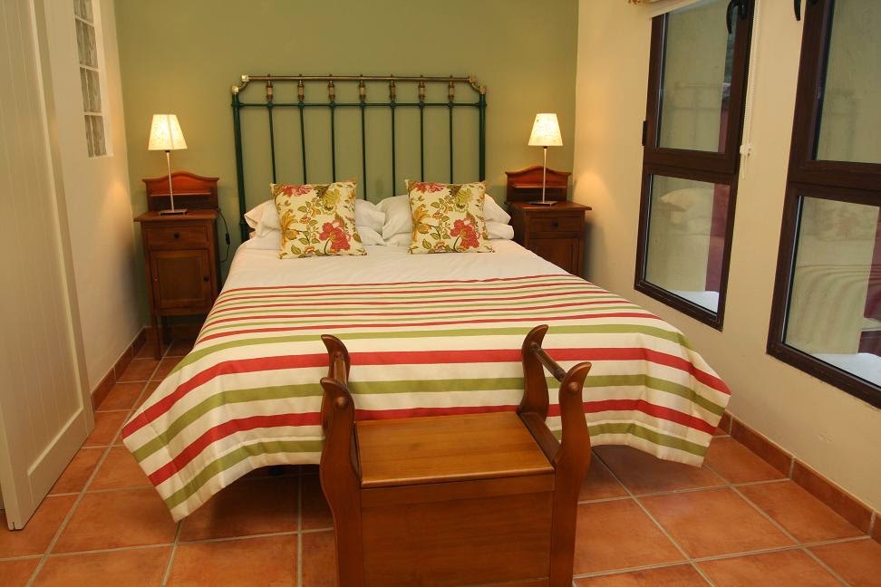 Royale tweepersoonskamer op de eerste verdieping bij Cortijo La Vista, met Frans balkon en uitzicht op het bergdorpje El Hoyo. Momenteel nog in authentieke stijl, later verrijkt met kosmopolitische invloeden. Babybed mogelijk op aanvraag.